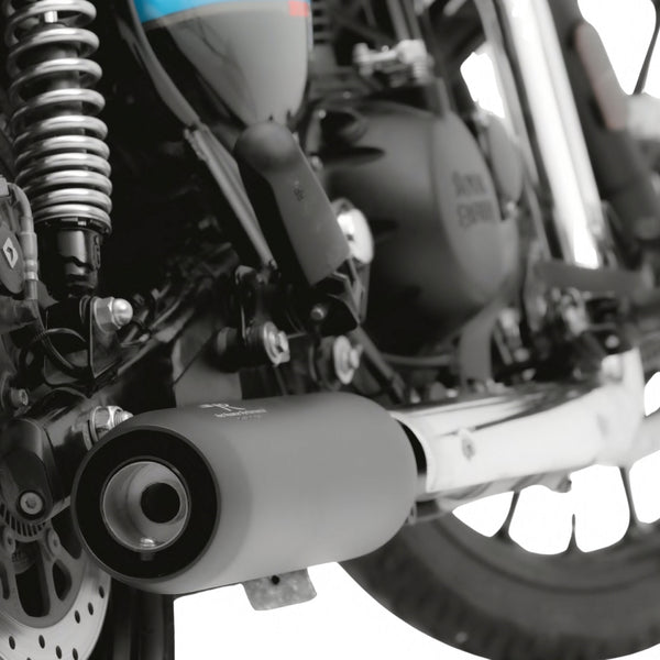 Introducing the Red Rooster Performance Polestar Pro Exhaust in a striking Black Matte finish, specially crafted to elevate your Royal Enfield biking experience. Meticulously designed and rigorously tested, this exhaust ensures a seamless flow, granting your bike a remarkable 20% boost in performance. Crafted from top-tier SS304 stainless steel, this exhaust guarantees unmatched durability and rust-free performance. Say goodbye to the limitations of traditional glass wool, as the Red Rooster Polestar Pro boasts ceramic wool, offering superior thermal resistance for an unparalleled riding experience. With a lifetime material warranty, you can ride with complete peace of mind. Upgrade your bike's performance and style by swapping out your factory exhaust with the Red Rooster Performance Polestar Pro. Get ready to revel in exhilarating rides like never before and immerse yourself in the authentic Royal Enfield thump with every rev as the Red Rooster Polestar Pro enhances the iconic sound you love.