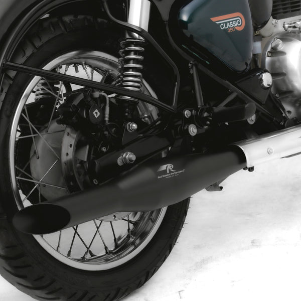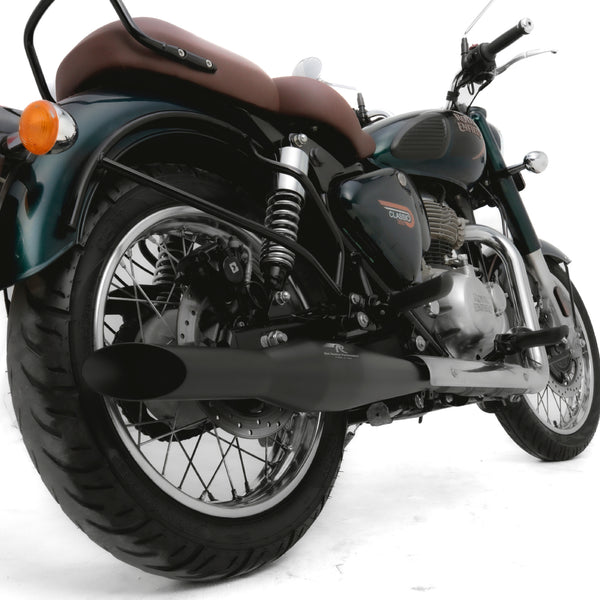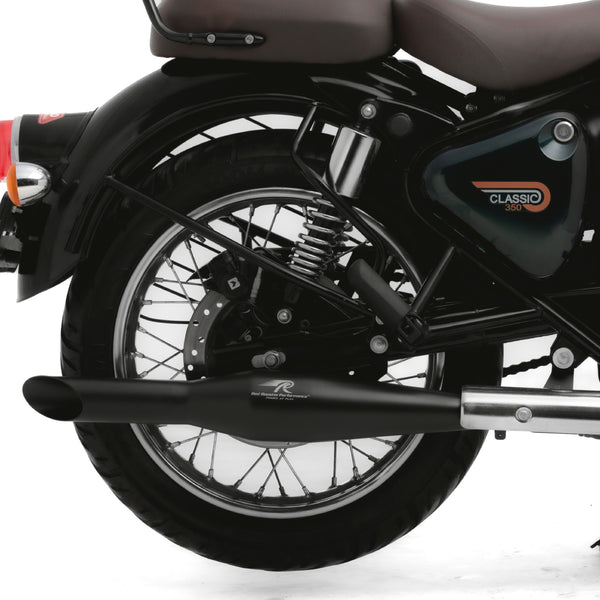 Introducing the Red Rooster Performance Rumbler Ace Exhaust in a striking Black Matte finish, specially crafted to elevate your Royal Enfield biking experience. Meticulously designed and rigorously tested, this exhaust ensures a seamless flow, granting your bike a remarkable 20% boost in performance. Crafted from top-tier SS304 stainless steel, this exhaust guarantees unmatched durability and rust-free performance. Say goodbye to the limitations of traditional glass wool, as the Red Rooster Rumbler Ace boasts ceramic wool, offering superior thermal resistance for an unparalleled riding experience. With a lifetime material warranty, you can ride with complete peace of mind. Upgrade your bike's performance and style by swapping out your factory exhaust with the Red Rooster Performance Rumbler Ace. Get ready to revel in exhilarating rides like never before and immerse yourself in the authentic Royal Enfield thump with every rev as the Red Rooster Rumbler Ace enhances the iconic sound you love.