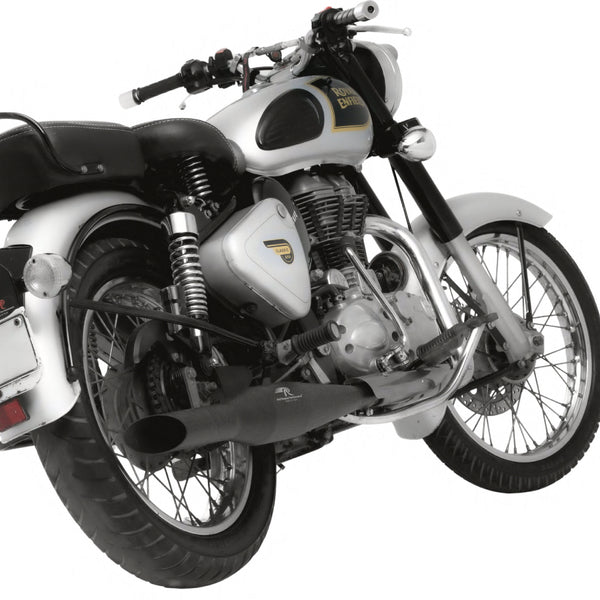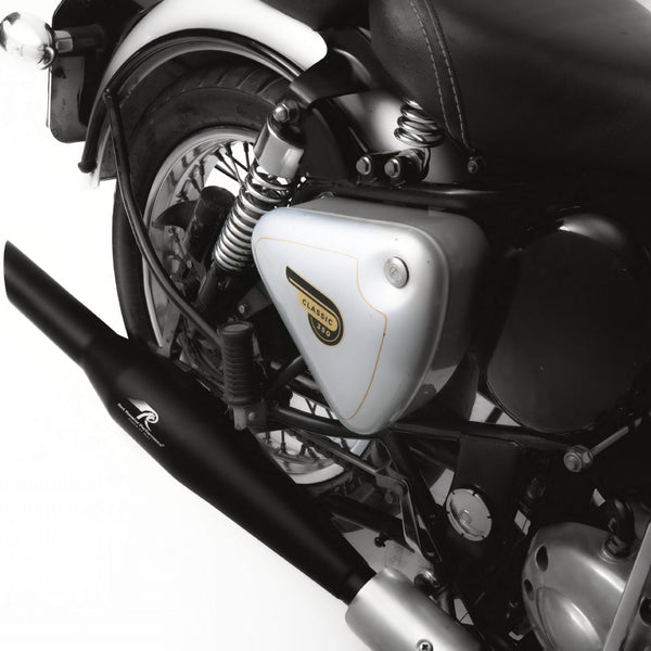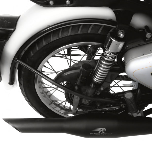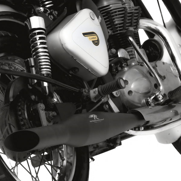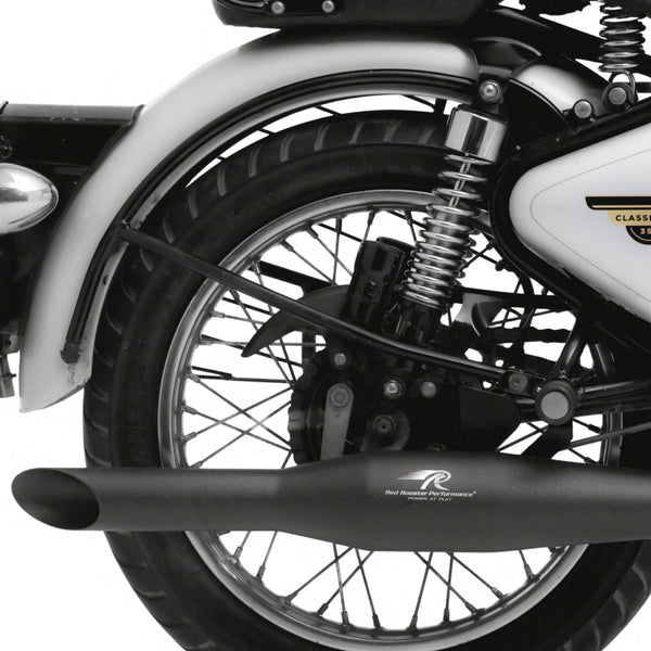 Introducing the Red Rooster Performance Rumbler Exhaust in a striking Black Matte finish, specially crafted to elevate your Royal Enfield biking experience. Meticulously designed and rigorously tested, this exhaust ensures a seamless flow, granting your bike a remarkable 20% boost in performance. Crafted from top-tier SS304 stainless steel, this exhaust guarantees unmatched durability and rust-free performance. Say goodbye to the limitations of traditional glass wool, as the Red Rooster Rumbler boasts ceramic wool, offering superior thermal resistance for an unparalleled riding experience. With a lifetime material warranty, you can ride with complete peace of mind. Upgrade your bike's performance and style by swapping out your factory exhaust with the Red Rooster Performance Rumbler. Get ready to revel in exhilarating rides like never before and immerse yourself in the authentic Royal Enfield thump with every rev as the Red Rooster Rumbler enhances the iconic sound you love.