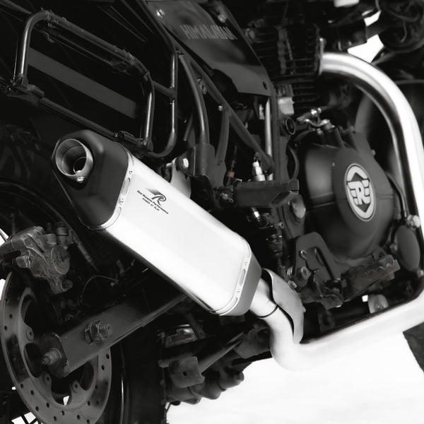 Embark on the ultimate adventure with the Red Rooster Performance Vertex Chrome (Polish) Exhaust, tailor-made for the Royal Enfield Himalayan and Scram 411 adventure tourer bikes. Crafted to redefine your riding experience, this exhaust is the epitome of power, durability, and performance. The Red Rooster Vertex is meticulously constructed using cutting-edge ceramic wool technology, ensuring unparalleled thermal resistance and an optimal exhaust flow. Combined with the highest grade of stainless steel (Grade 304), this exhaust promises unbeatable durability, withstanding the harshest terrains and weather conditions. Get ready to unleash the full potential of your Himalayan/ Scram 411 as the Red Rooster Vertex takes your ride to new heights. Experience a surge in power, enhanced torque, and improved throttle response that will fuel your passion for adventure like never before. Take on the rugged trails confidently, knowing that the Red Rooster Performance Vertex exhaust has your back. Elevate your riding game and conquer every challenge that comes your way. Upgrade to the Red Rooster Vertex and let the Himalayan/ Scram 411 roar with authority, leaving a trail of excitement and envy in your wake.